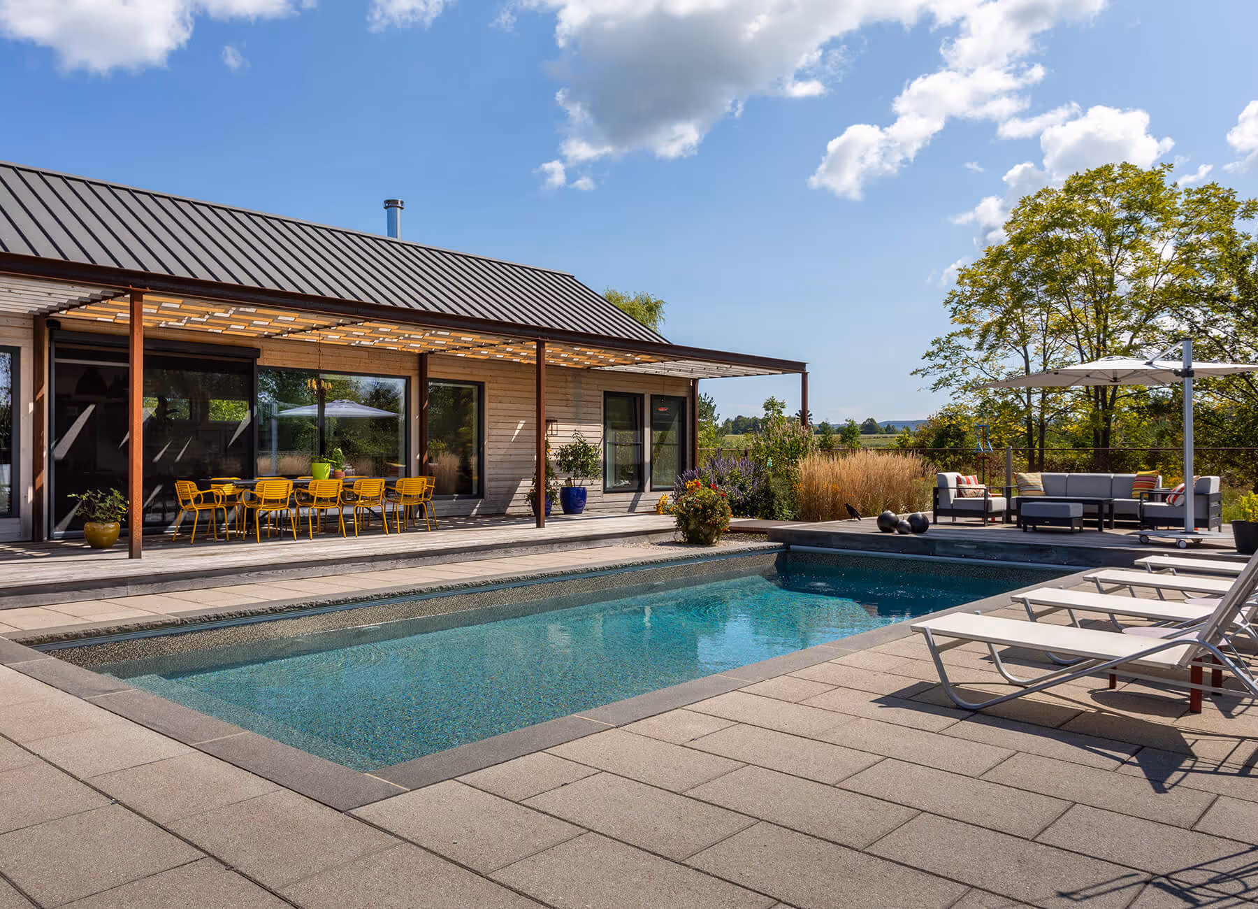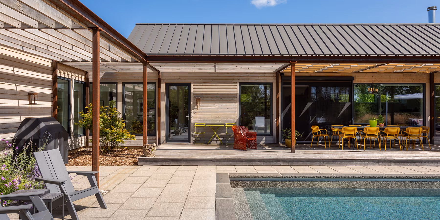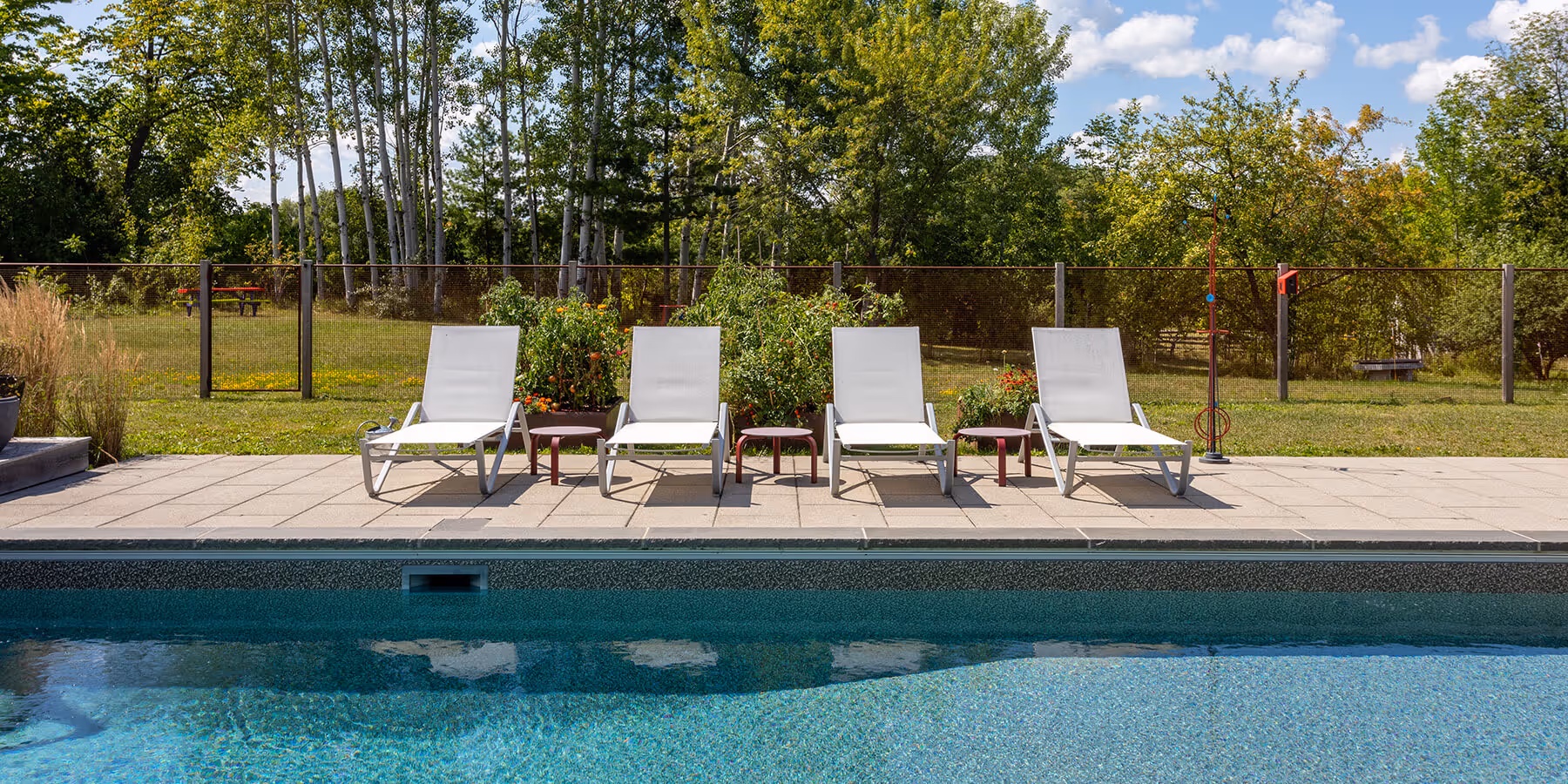 Even the pool fence was treated as part of the design, not just a safety requirement. Cedar posts, a steel top rail, and steel mesh were brought together to match the style of the property and create an enclosure that feels intentional. The result is a backyard that feels complete, cohesive, and full of character, with every detail contributing to the overall look.